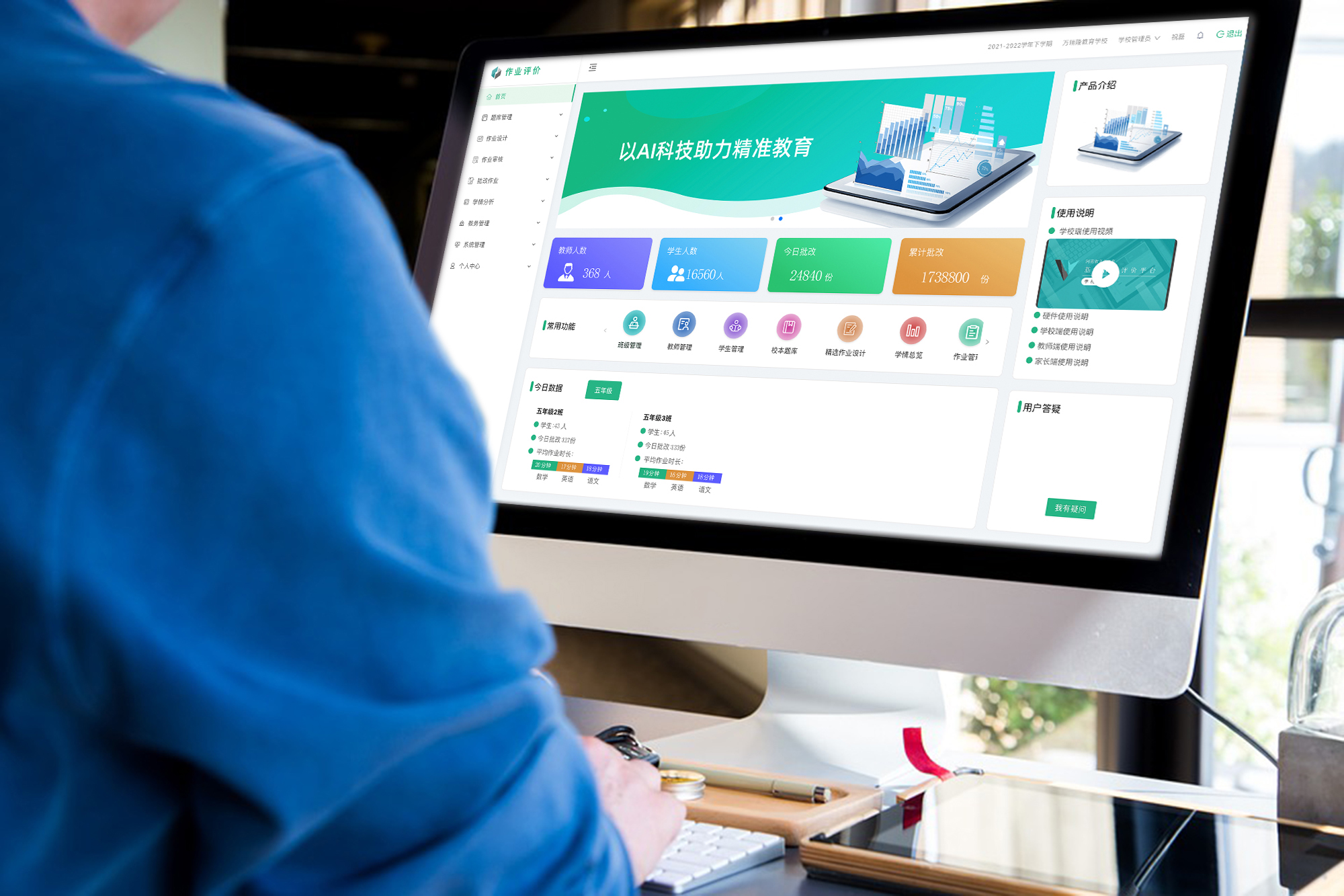 深入教学核心环节,减少教师负重性劳动,运用信息技术为教师课堂教学提供数据分析支撑,实现规模化的因材施教
